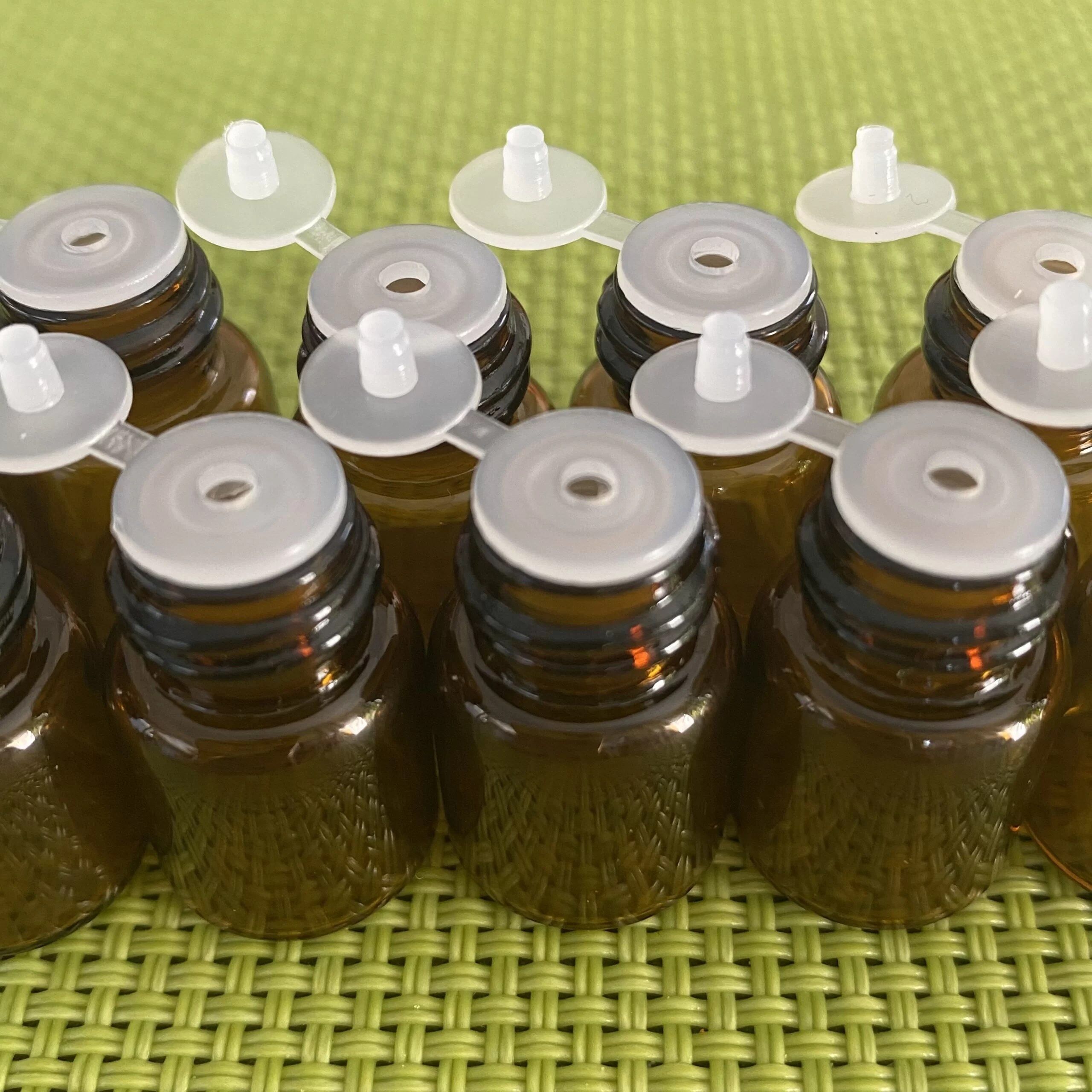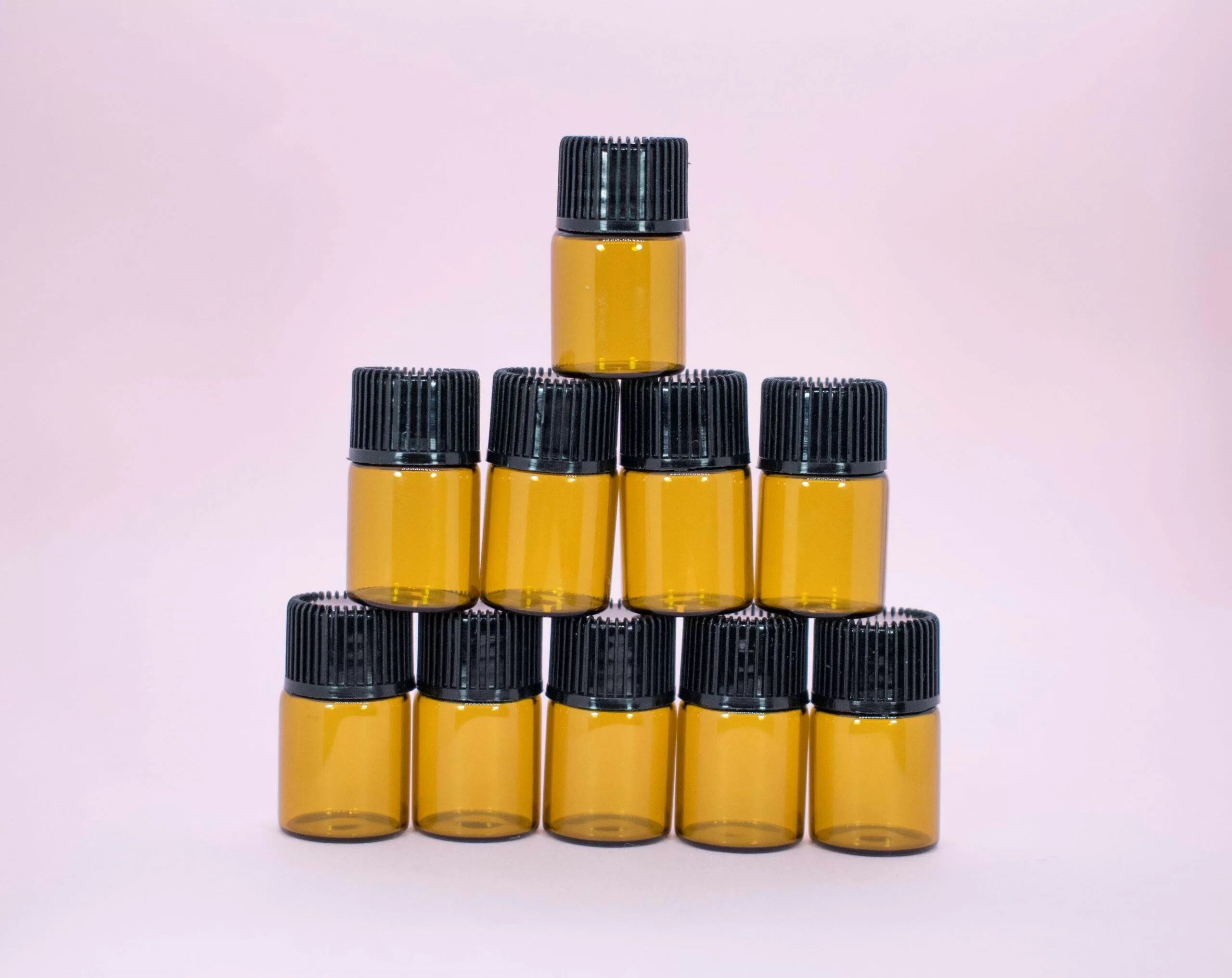 Amber (barna) színű minta üvegcse, mely praktikus megoldás, hogy az olajaidból mintát adhass ismerőseidnek, családtagjaidnak, vásárlóidnak.